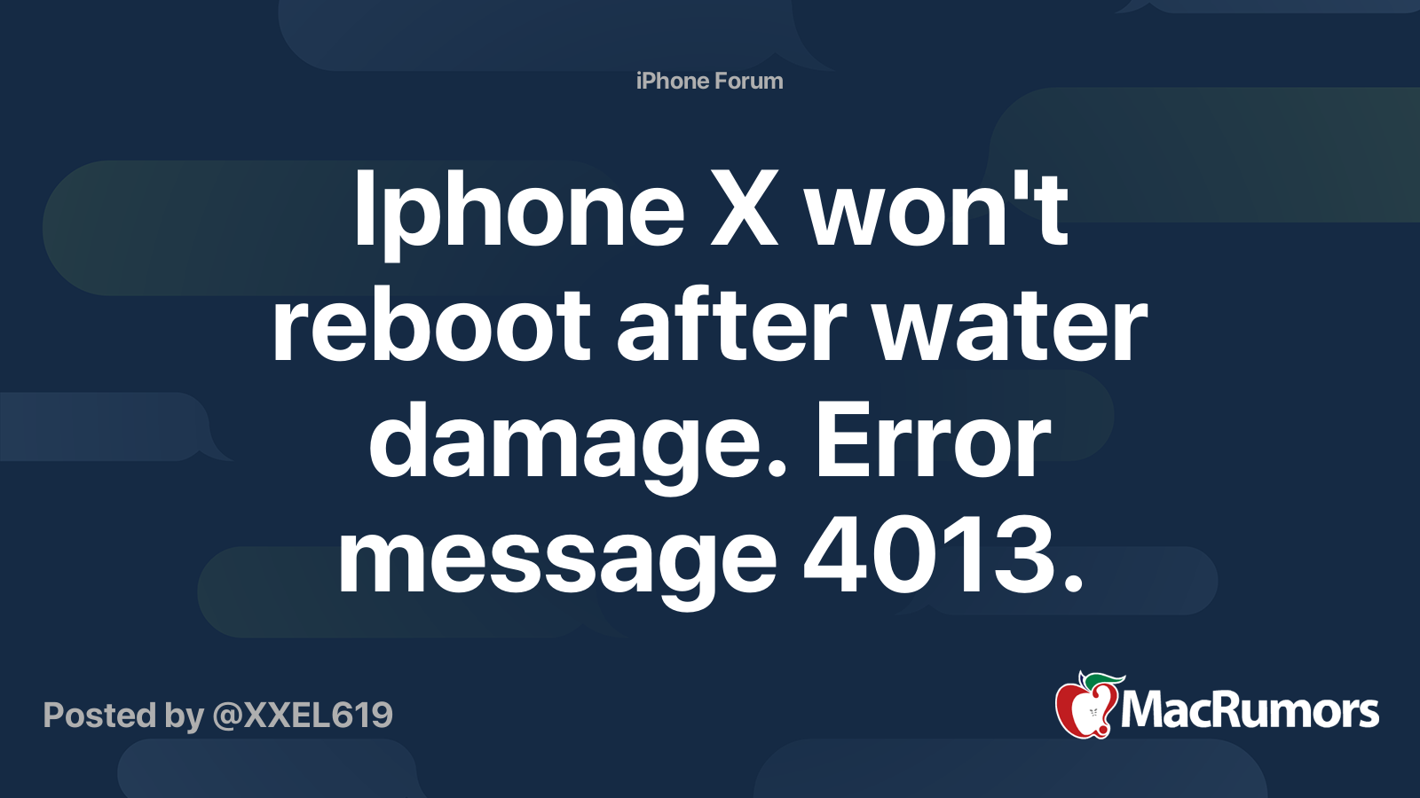 Iphone X Won T Reboot After Water Damage Error Message 4013 Macrumors Forums